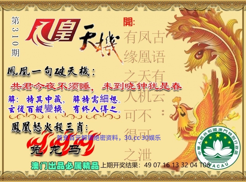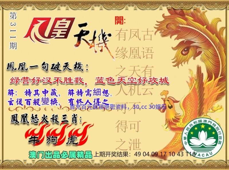 312期:凤凰一句破天机:三羊开泰旧年事,自知今春又一期 |